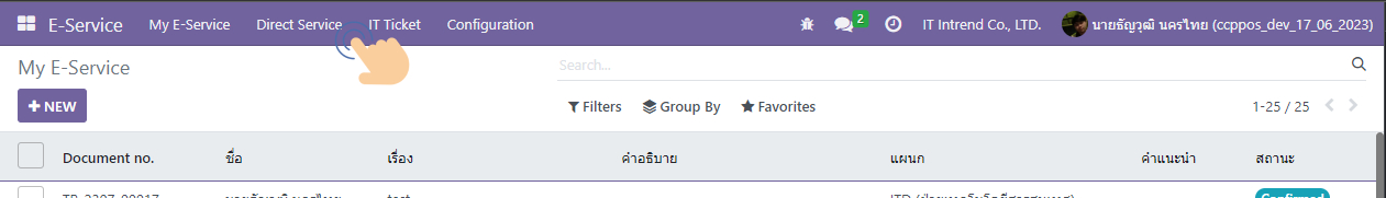 1. เข้า Home Menu เลือก Approval Dashboard เลือกที่ ITI Ticket และ DIRECT TICKET