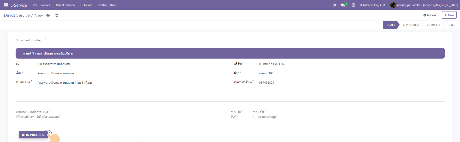 ขั้นตอนที่ 1 : พนักงานไอทีได้รับการขอรับบริการ