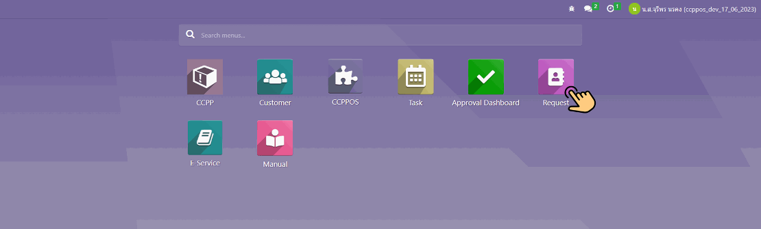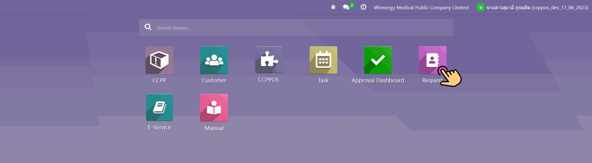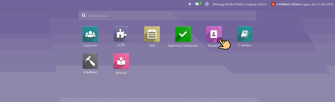 1. เมื่อเข้าสู่ระบบเสร็จเรียบร้อย ให้กดเลือกเมนู Request