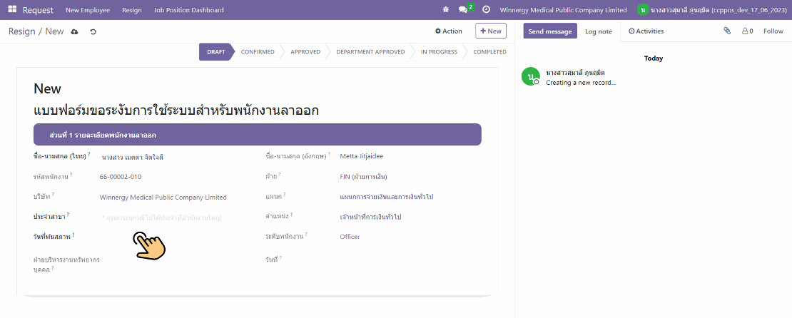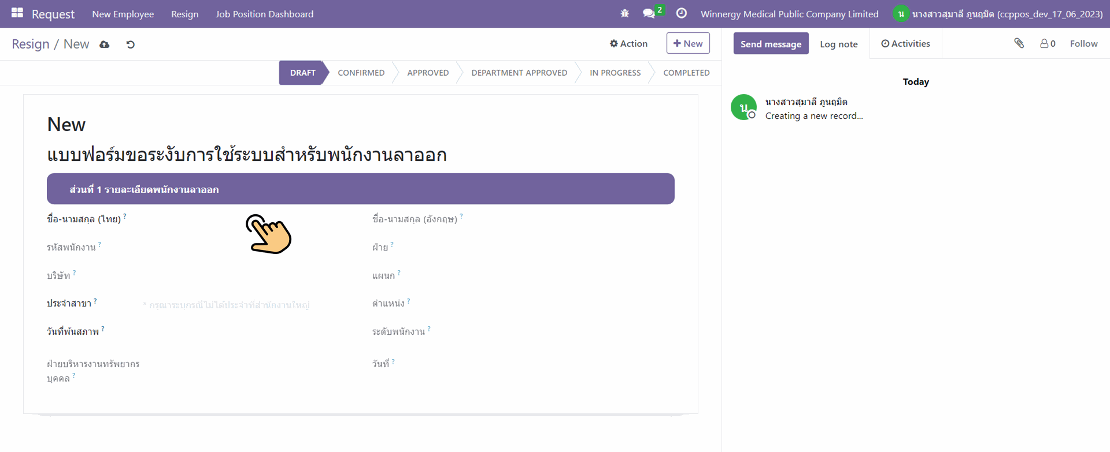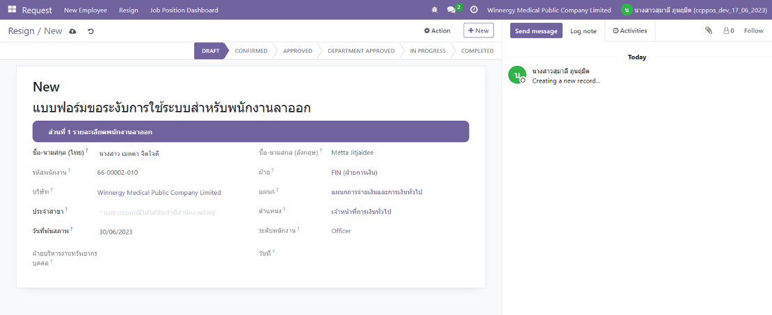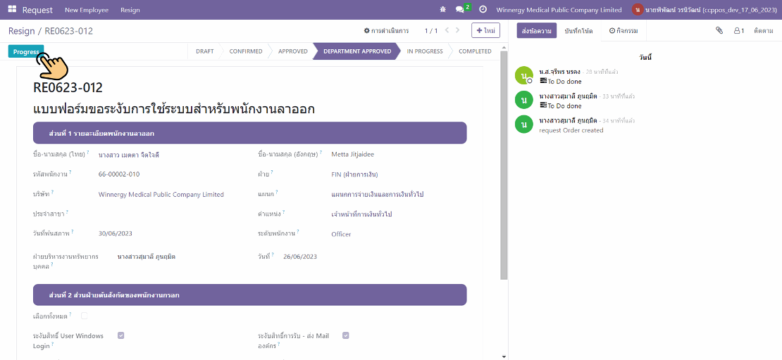 3. ระบบจะทำการส่งเอกสารไปยัง Department ที่พนักงานเคยสังกัดอยู่