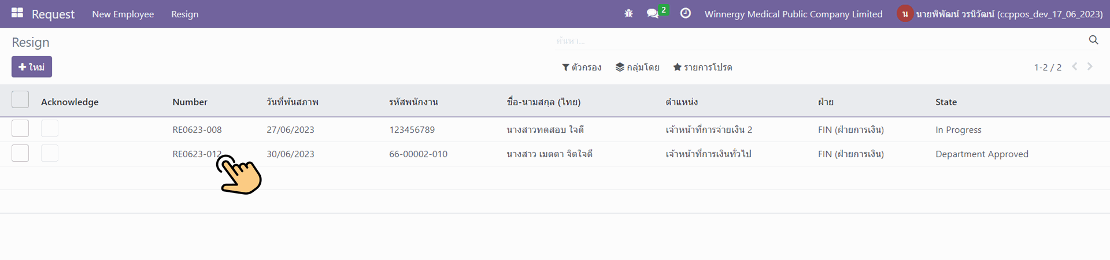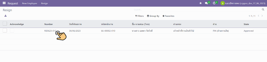 2. เลือกเมนู Resign จากนั้นเลือกรายการที่ต้องการจัดการ