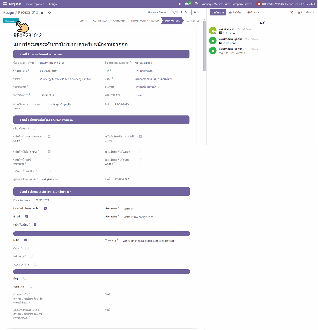 4. เมื่อตรวจสอบและระงับสิทธิ์ทั้งหมด รวมไปถึงเรียกคืน Notebook หรือ PC ที่พนักงานเคยถือครองอยู่ขณะเป็นพนักงานให้กดปุ่ม Complete